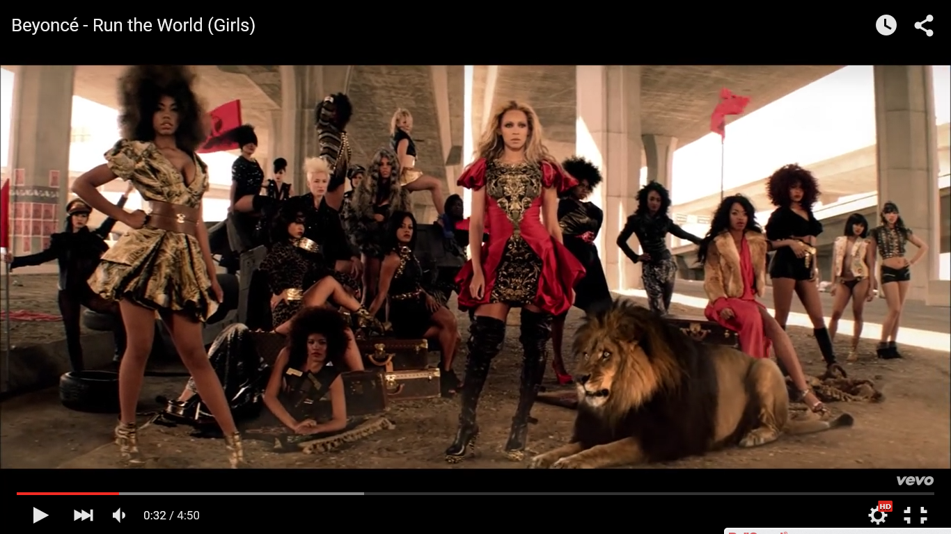 In this music video there are no big intertextual references however for a couple of seconds at the beginning of the music video Beyoncé is dressed in a costume that could be trying to dress up as Cleopatra. Cleopatra was the last active pharaoh who ran Ptolemaic Egypt and was a very powerful woman and therefore by symbolising her in the music video she is showing that she has power.